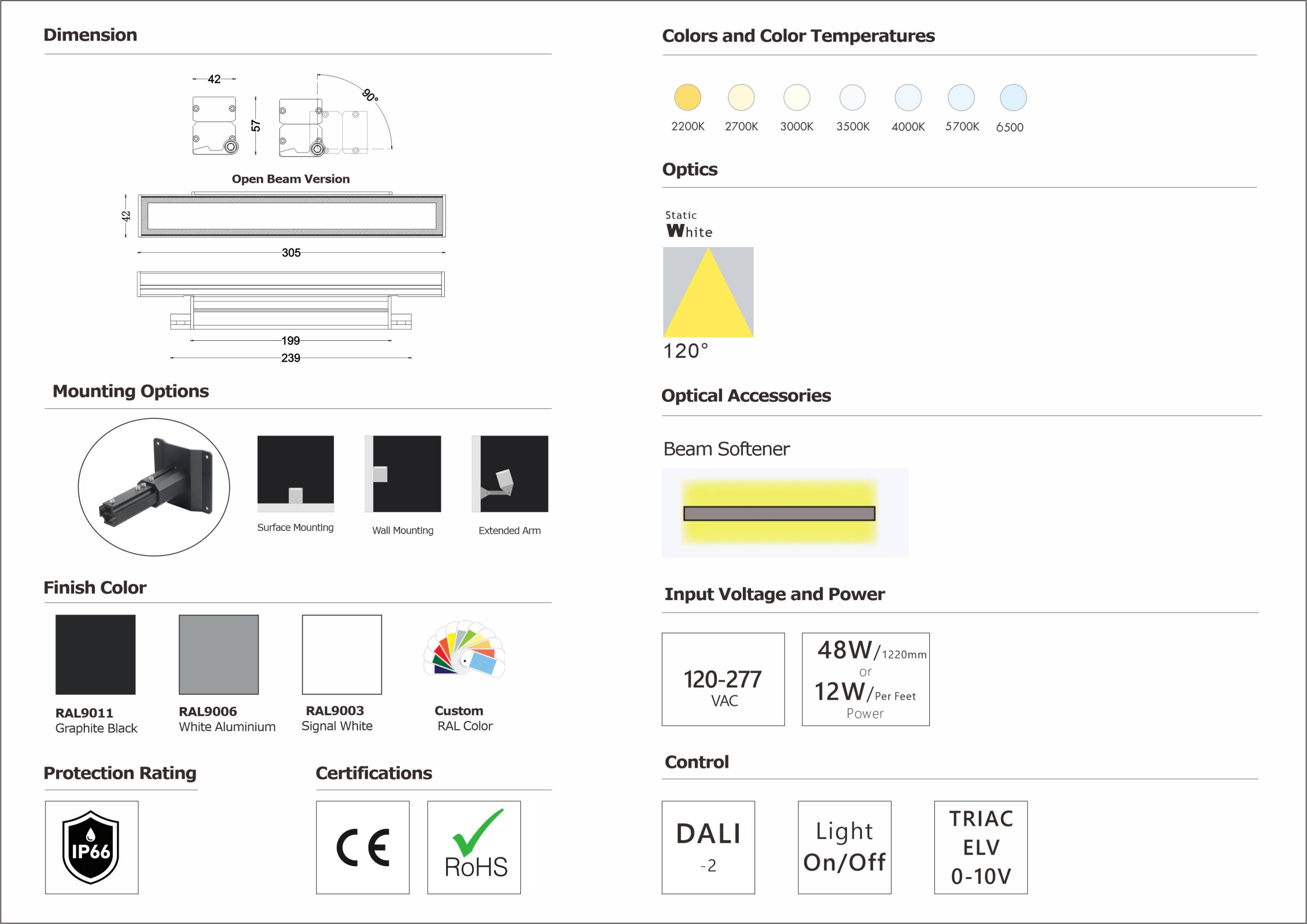 The Colordreamer Cove Light C42 is a high brightness, power Buit-in profle that effortlessly integrates intoany architectural setting. Featuring Light ON/OFF, TRIAC,ELV & 0-10V control, its elegant modular designconceals powerful LED technology, allowing you to create a soft, uniform glow that bathes yoursurroundings in a captivating, gentle radiance.