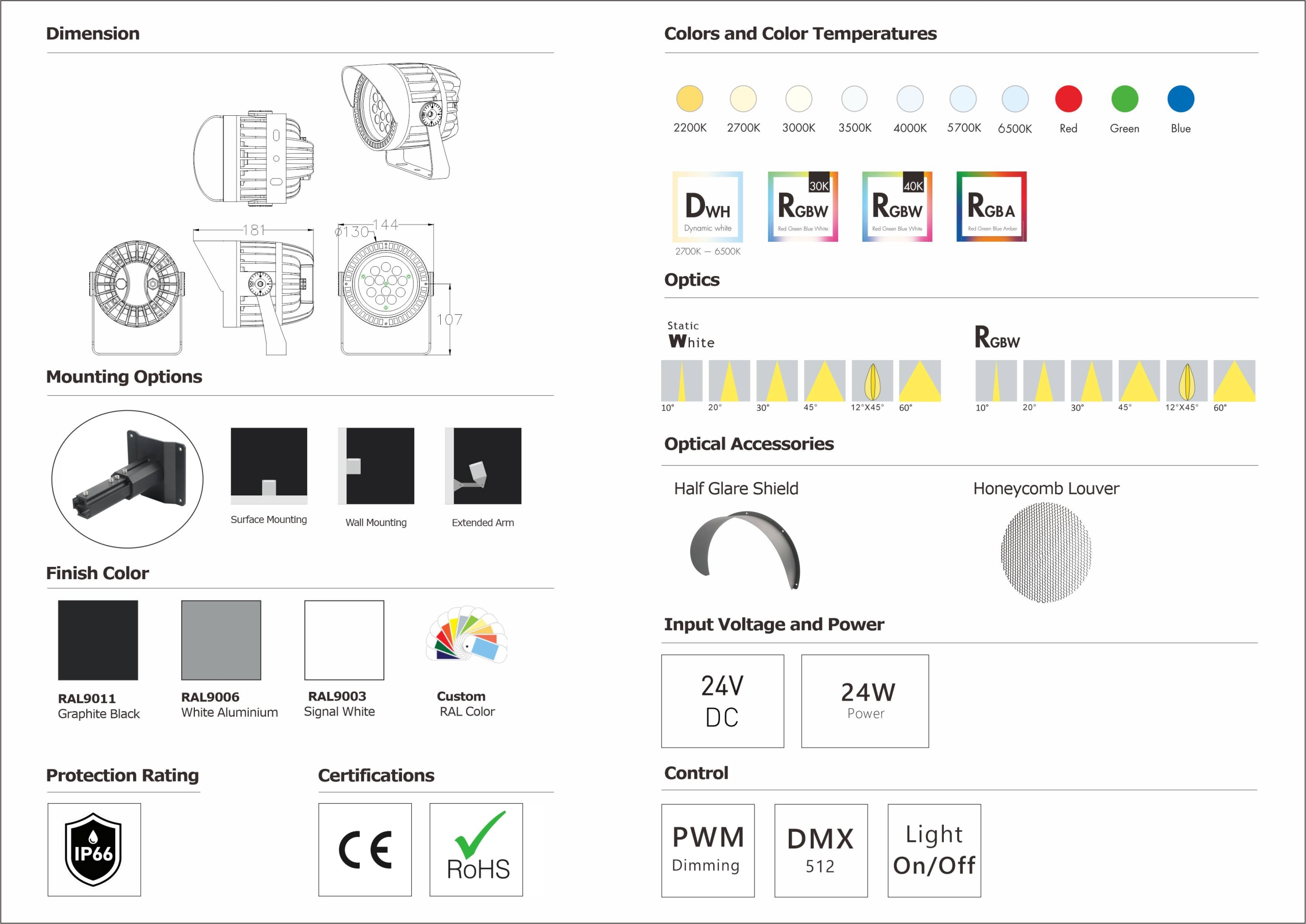 Product:FD130 Flood White/RGBW 24VDC 24W On-Off/DMX