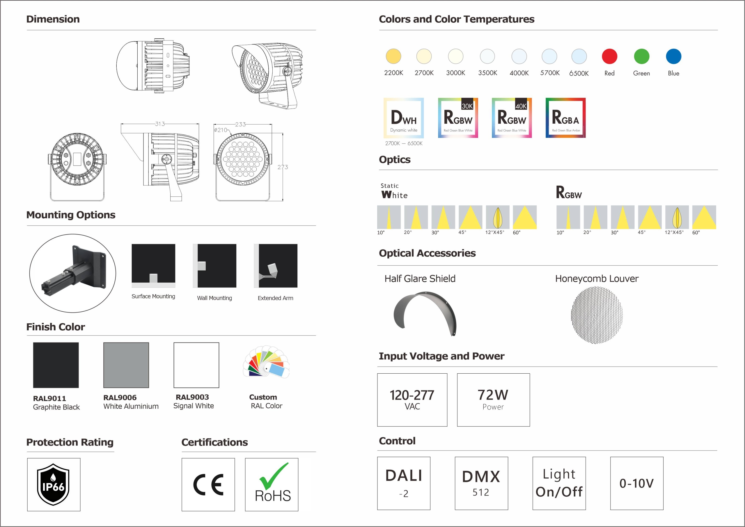CCT adjustable models available (2700K-6500K).