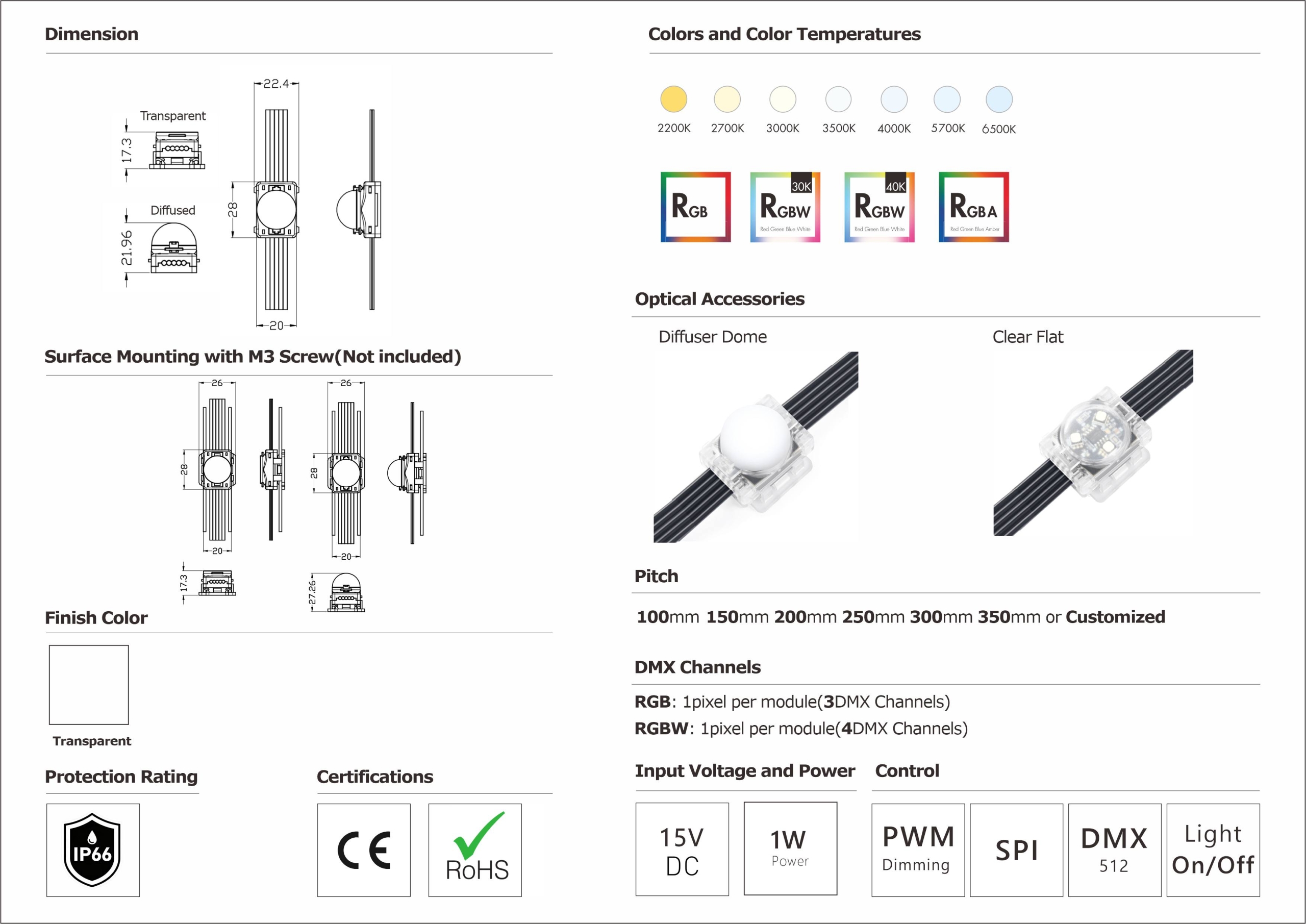 | Pixel dimensions with dome | 28x20x22mm(Diffused Dome Lens) | ||