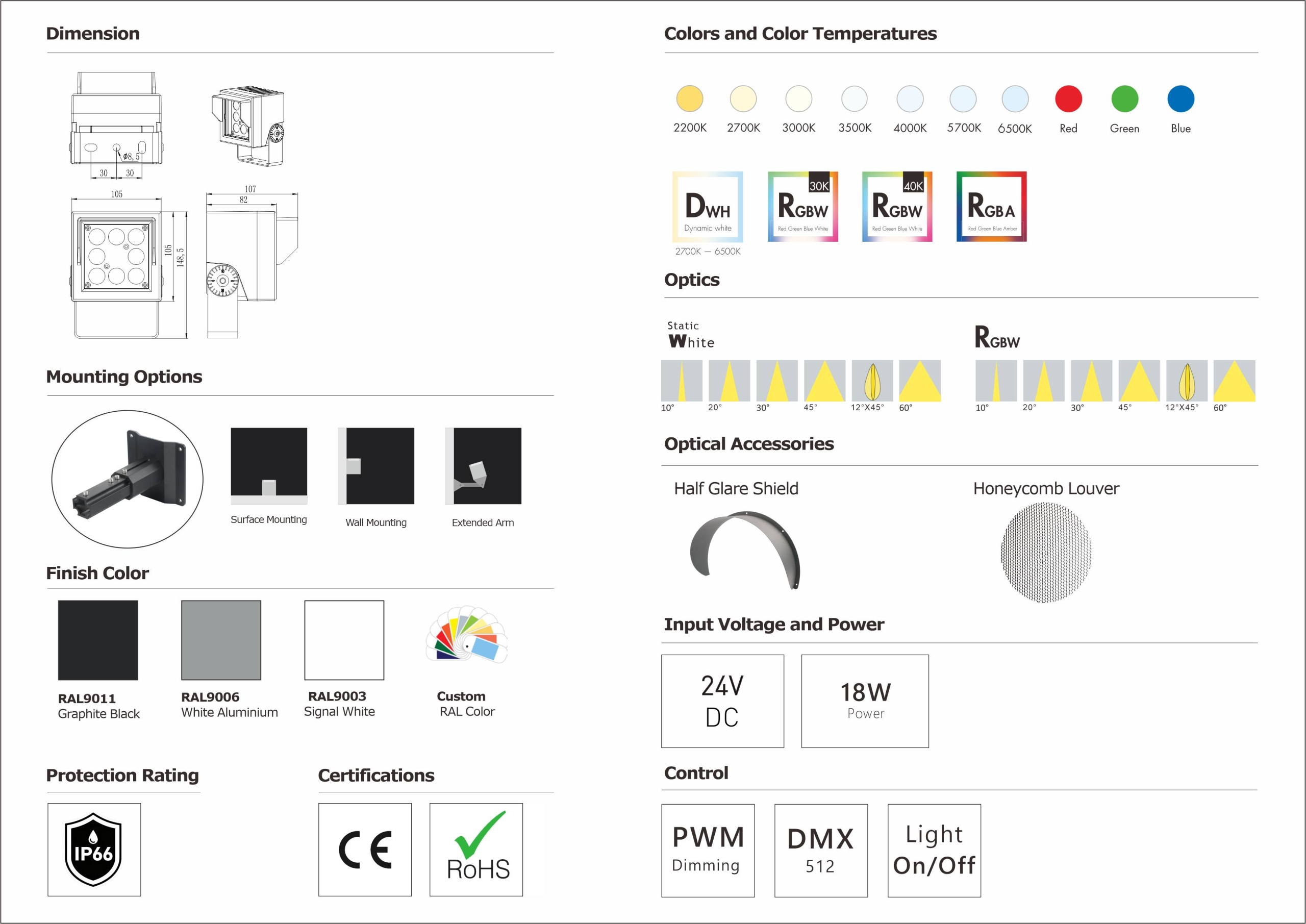 Product:QC105 Flood White/RGBW 24VDC 18W On-Off/DMX