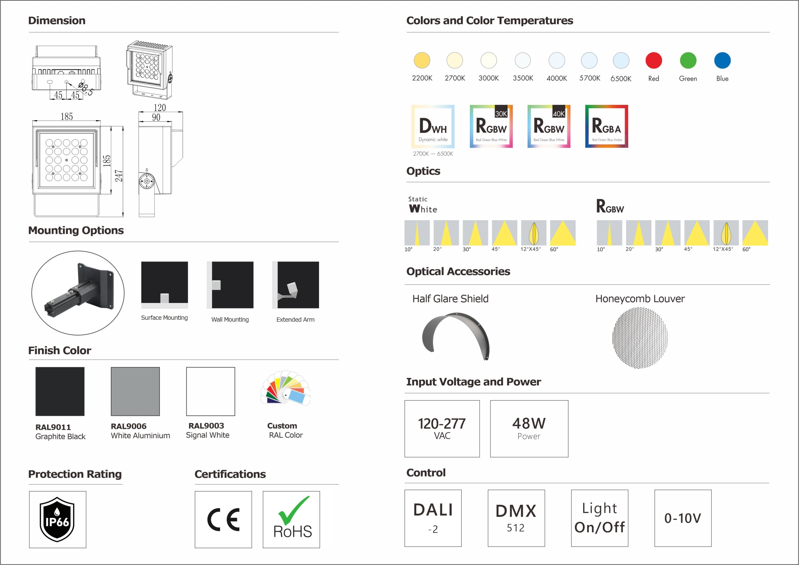 Product:QC185 Flood White/RGBW 120-277VAC 48W On-Off/DMX