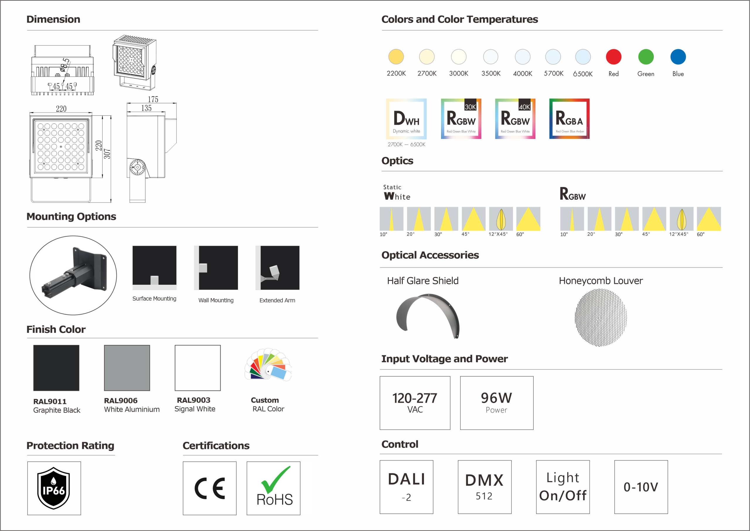 Product:QC220 Flood White/RGBW 120-277VAC 96W On-Off/DMX
