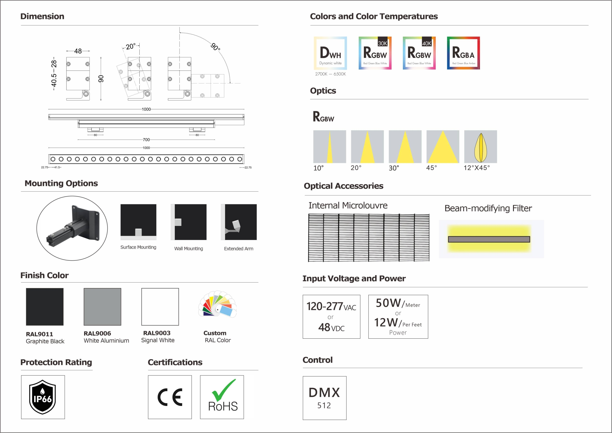 | Finish | Powder coating, Black/White/Grey or Custom RAL Color | |||